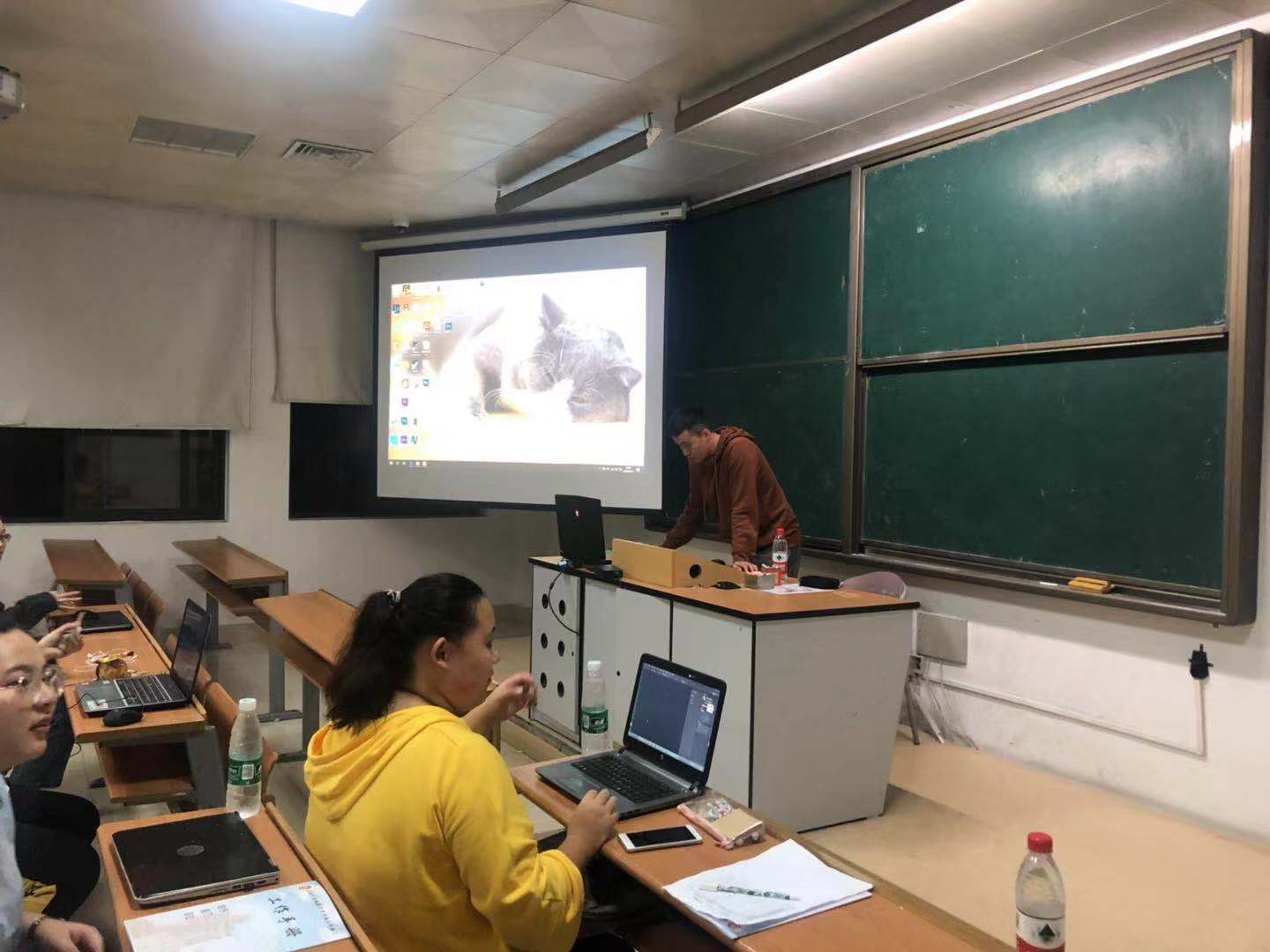 11月3日于教学楼7#305,陈嘉豪就海报版面设计、Photoshop工具栏应用以及图片处理方法,进行了详细的讲解,并以青设计工作室近期设计的宣传海报为例,更为深入地讲解海报主题、排版等方面的相关知识。在现场演示中切实地解决了许多同学们在海报设计时所出现的问题。现场气氛活跃,同学们积极提问,发表自己的想法。并且给培训成员留下了PS的设计作业,并在培训结束后对每一个人存在的问题进行了交流。