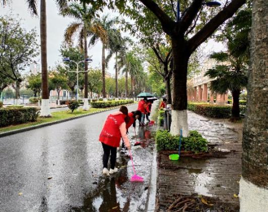 春雨细如丝,如丝霡霂时。一连几天的春雨,带来了春的气息,也给校园带来了积水。此时,雷锋精神心中藏的同学们自发的走出舒适的宿舍,对校园各个角落进行清扫。加强了同学们的团结合作意识,对学院的建设也起到了积极的推动作用。