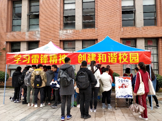 3月5日,当天下着大雨,天气寒冷,却无法阻挡青年志愿者们为宣传雷锋日的满腔热情。志愿者们现场引导观众如何参与并维持秩序,保证了活动的顺利开展。除此线下摆点活动以外,线上以微信朋友圈和公众号为载体,发布相关文章图片与视频,让更多的同学们具体的了解雷锋日所要宣传的雷锋精神。