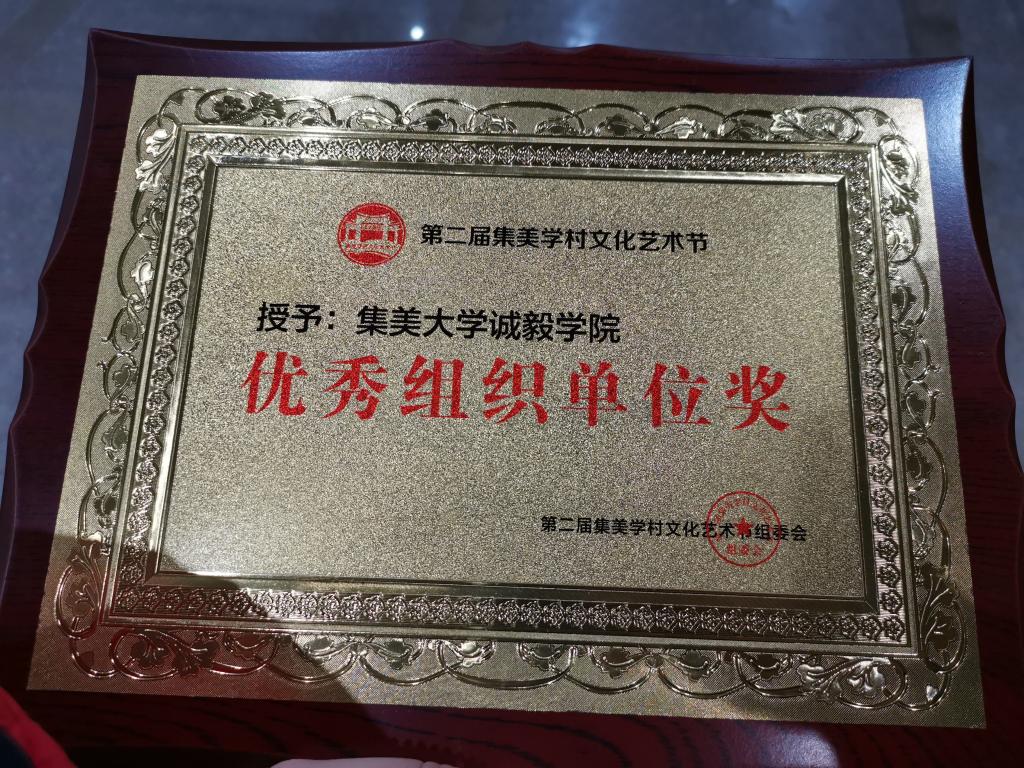 2019年1月5日,由中共集美区委、集美区人民政府主办,中共集美区委宣传部等单位承办,集美大学诚毅学院、华侨大学、集美大学等高校联办的第二届集美学村文化艺术节闭幕式暨2018“听见集美”厦门集美学村周末音乐会年终盛典在集美福南堂影剧院举行,辖区高校师生共同为近千名观众奉上了一场精彩绝伦的视听盛宴。现场举行了“优秀组织单位”颁奖仪式,经本届集美学村文化艺术节组委会评选,我院与华侨大学、集美大学、集美区教育局等7个院校和单位获得“优秀组织单位”的称号。