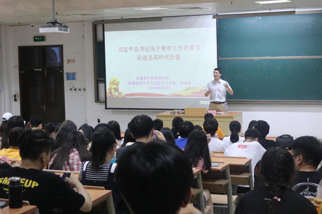 6月5日晚,院团委组织学习《习近平总书记关于青年工作的重要论述及其时代价值》,福建医科大学马克思主义学院林明惠老师应邀来我院做《习近平总书记关于青年工作的重要论述及其时代价值》专题报告。院团委书记林伟毅、各系团总支书记、各级学生组织主要团学干部及各院系学生代表共同听取学习。