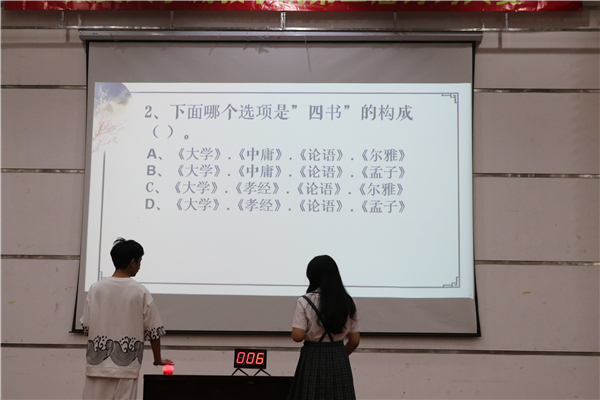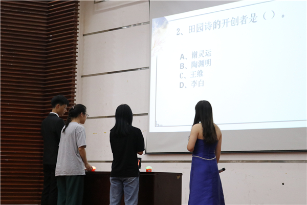 6月4日,诚毅学院第二届诗词大赛决赛在景祺楼104举行。经过初赛的比拼,共有10名选手进入决赛。决赛设置“国学常识抢答”、“你比我猜”、“诗词理解”、“飞花令”,四个环节,最终英语1791刘艺蓬获得一等奖,金工1792林育培、财政1891卢琳娴获得二等奖,中文1891赵子夷、学前1792林姗姗获得三等奖。