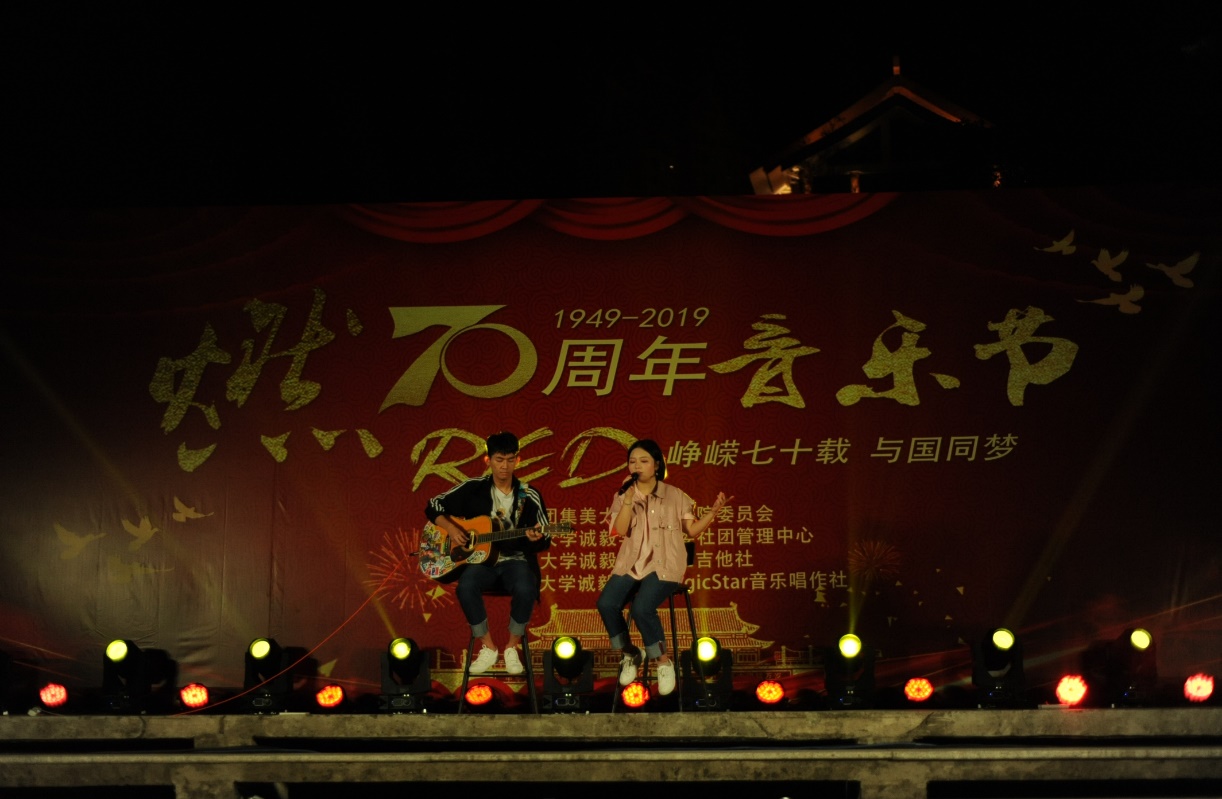 10月23日,为庆祝中华人民共和国成立70周年,由我院团委主办的庆祝中华人民共和国成立七十周年“燃·RED音乐节”在诚毅学院篮球场举行。我院Live吉他社以及Magic Star音乐唱作社等社团参与演出。
