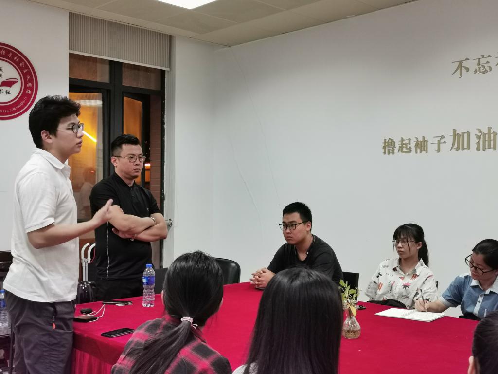 交流会上,林健表示,能够回到母校为院团委的发展出一份力,自己感到十分开心。在简短的自我介绍后,林健对融媒体各个部门的职能及分工进行详细的解说并结合自身的工作经验对现场的拍摄工作进行指导。同时他还根据院团委公众号先前发布的部分视频、推文就后期的视频剪辑和图文编辑方面进行了具体的分析,对我院团委目前宣传工作所存在的问题提出自己的意见与建议。会后,林健还对成员们提出的问题进行了一对一的解答。