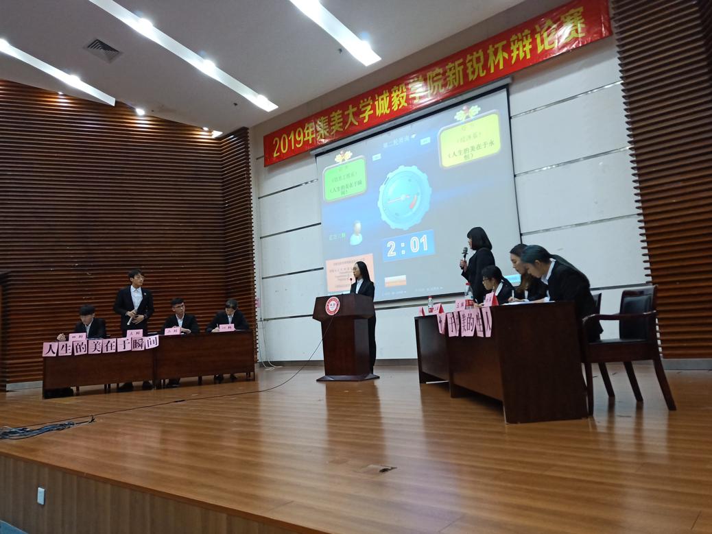 本次比赛由人文科学系1队与人文科学系2队,信息工程系辩论队和经济系辩论队分别就“自我肯定更重要/社会肯定更重要”与“人生的美丽在于瞬间/永恒”展开辩论。双方辩友用清晰的思路与简明的语言为己方表达观点,他们出众的口才与出色的台风引得观众发出阵阵惊叹。辩论结束后,蒋有经就选手的表现进行了精彩的点评,为各位辩手接下来的辩论学习提供了新的方向。