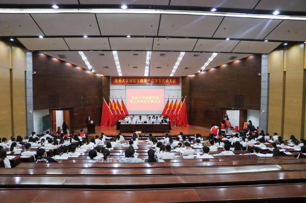 11月29日上午,我院第三次学生代表大会于景祺楼104报告厅举行。院党委副书记颜承志,学工部、院团委负责人及全体代表出席大会。全体代表审议并通过了《集美大学诚毅学院第二届学生会工作报告》和《集美大学诚毅学院学生会章程(修订案)》。大会通过无记名投票,选举产生5名集美大学诚毅学院第三届学生会主席团成员。