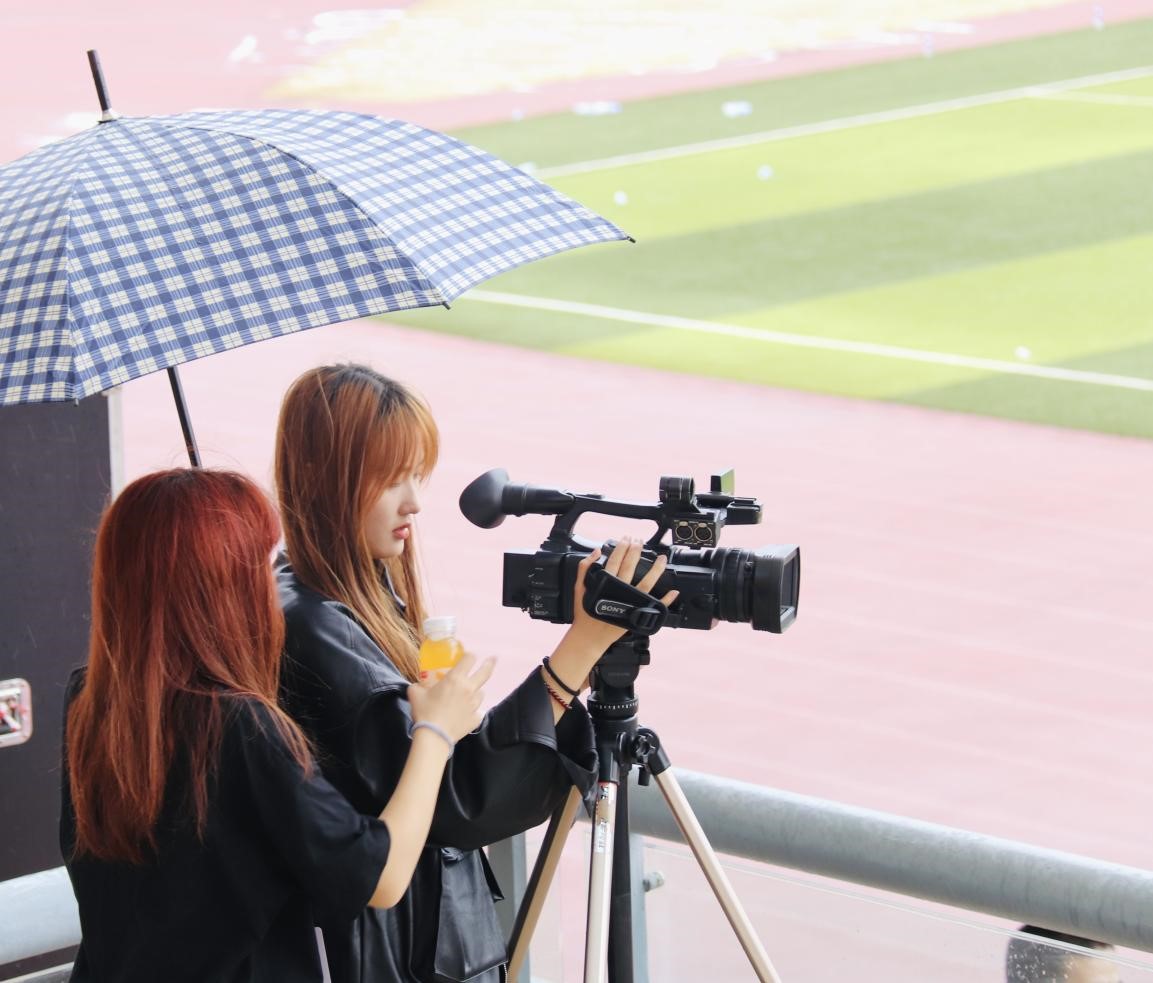 在运动会这样隆重又热闹的日子里,更是少不了记者团的同学奔碌的身影。炎炎烈日下,影像工作室用相机定格下一帧帧精彩的画面、记录下一段段独特的记忆;伴着风声,电台的声音通过话筒送遍绿茵场,为运动健儿们加油打气,也为大家带来好成绩的喜讯;视创用画笔为简单的图片赋予生命和活力,每一幅宣传海报都凝结了他们的智慧和用心;采编将每一个精彩的瞬间转化成或朴实或华丽的辞藻,把这些美好用文字缓缓道来;人群散去,星光熠熠是新媒体仍在忙碌的徽章,他们是图文的协奏者,将一切的记录汇集成一篇篇引人入胜的推文;你看,那是策划的身影,他们在审稿,在背后默默地奉献,将一切程序安排得井井有条,确保事物有序的进行。分工明确,做事仔细,我们在各自的岗位上坚守,付出自己的热血和精神,只为能展现不一样的青春风采。