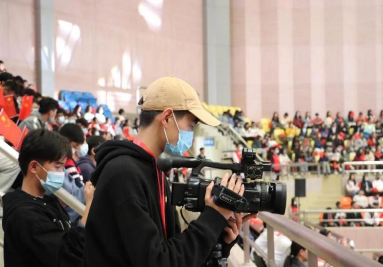 在新生报到的第一天,新闻中心记者团就在进行跟拍记录新生的入学第一天。同时采编部的同学会对新生进行采访。开学典礼晚会举办时,他们也是第一时间到达,进行拍摄和记录。你每时每刻都会看见一些四处奔波劳累的身影,那一定是新闻中心记者团的成员们。