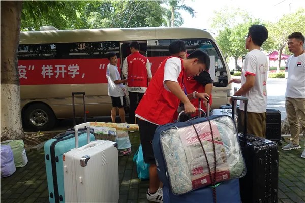 专升本迎新之际,为保障新生入学报道的安全性与可行性,学院组织志愿者帮助新生搬运行李,缓解新生负担, 院内区间上车点、下车点都有志愿者进行服务。厦门北站、校园各处、报到处的各个窗口也都有志愿者的身影。
