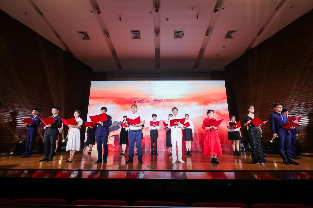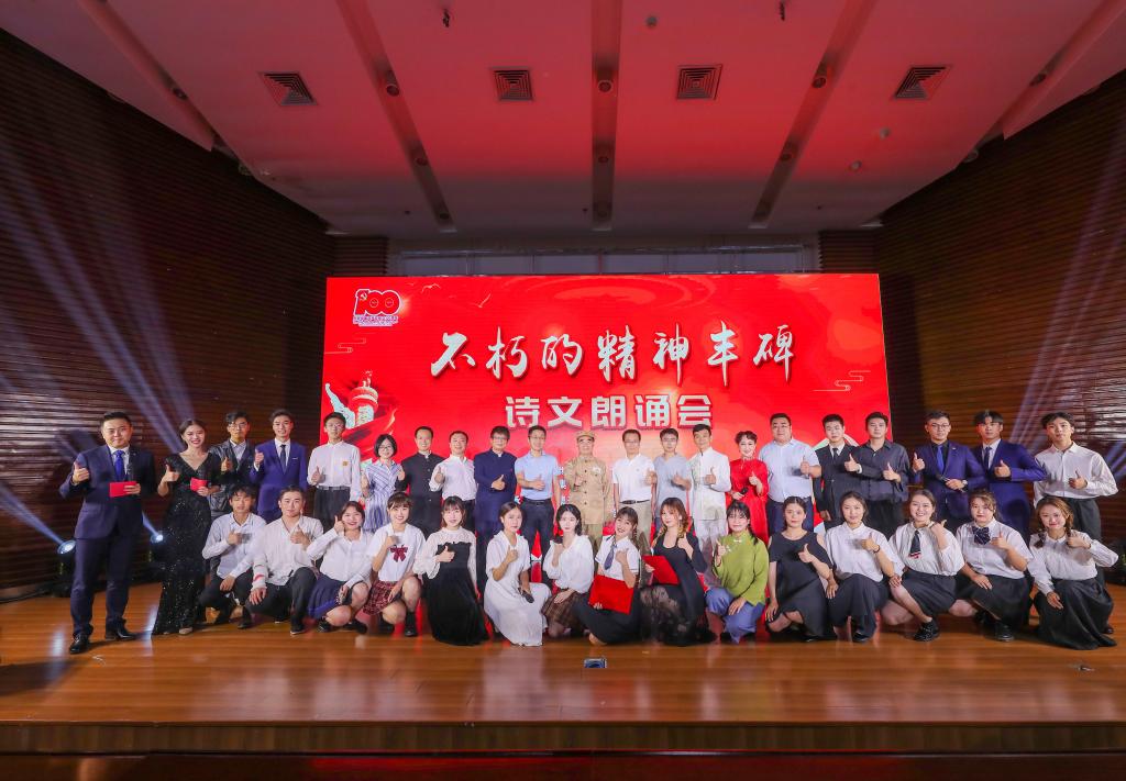 此次朗诵会由我院团委和集美区文联主办,我院诵读协会和集美区诵读协会承办,自3月初开始筹备,历经两个多月的精心雕琢,精选了12个朗诵节目为中国共产党成立100周年献礼。朗诵会分为《沧桑巨变,春风化雨》《锐意进取,上下求索》两个篇章,通过师生的深情演绎,有血有肉地还原了中国共产党百年历程的艰苦斗争、先烈献身革命的满腔热血,展现了新时代青年人继承革命先辈精神,勇于担当时代重担,为实现祖国的繁荣昌盛而不懈奋斗的青春风貌。结尾全场师生齐唱《没有共产党就没有新中国》,挥动手中的国旗,以歌声唱响浓浓爱国情,向建党百年送上祝福。