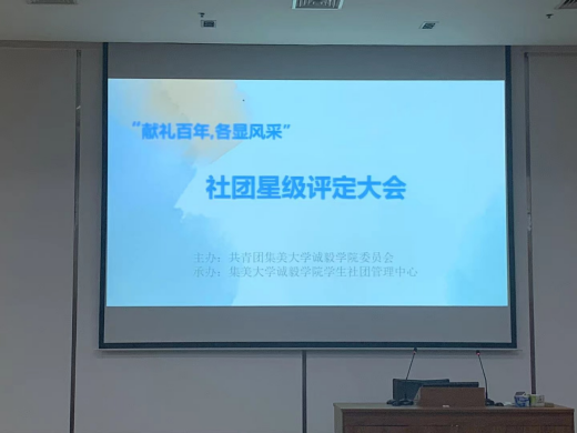 集美大学诚毅学院“献礼百年,各展风采”2020-2021学年集美大学诚毅学院社团星级评定大会圆满落幕,鼓励并促使我校学生社团更好地发展,更好地提高学生社团活动的质量,促进学生社团之间相互交流、互相学习、共同进步。恰逢建党100周年,本次活动的成功举行弘扬了以“爱国、进步、民主、科学”的为核心“五四精神”,营造良好的校园气氛,同时为大力加强我院青年的思想道德建设,提高学生综合素质,促进学生健康成长。