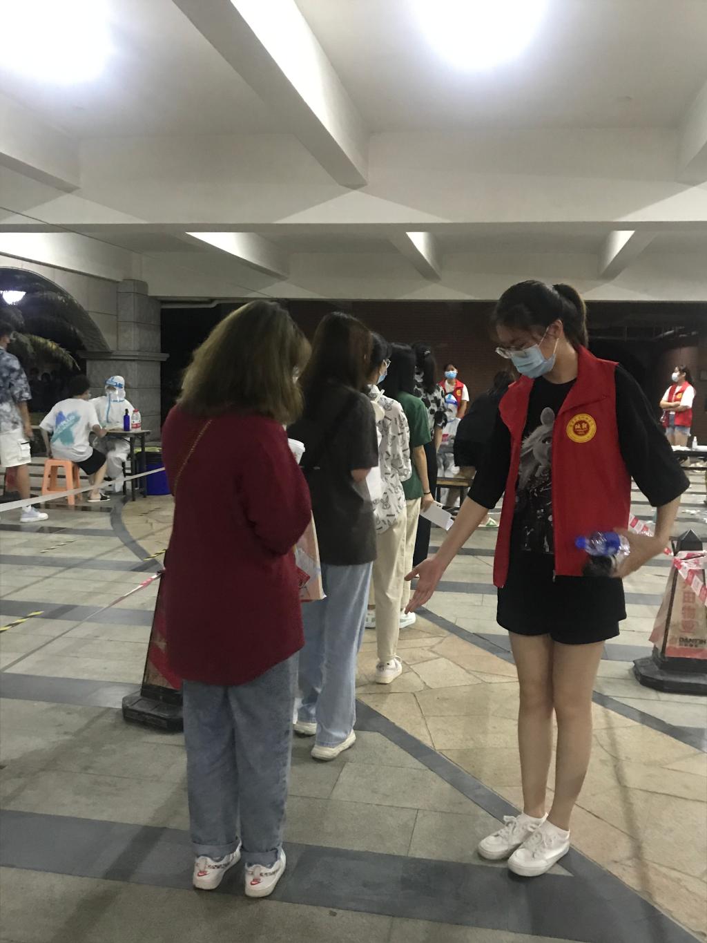 9月11日、9月18日、9月20日、9月25日,我院进行了4轮全院核酸检测。为助力核酸检测高效进行,核酸检测志愿者们义无反顾地冲上前线,传送物资、测量体温、维持现场秩序、协助信息员登记信息,与医务人员、学院教职工们并肩战斗。志愿者们平均单次服务在岗时间超过4个小时,他们以实际行动亮身份、树形象,在奉献中磨练自我,让“志愿红”遍布检测现场的每一个角落。