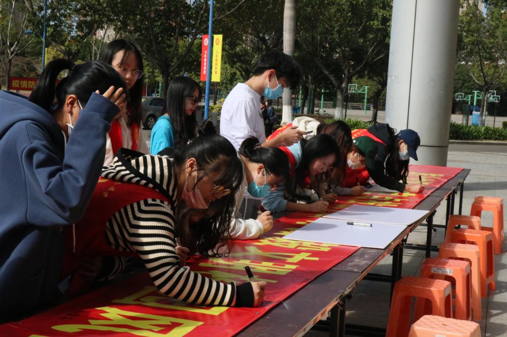 活动中,我院青年志愿者在诚毅食堂餐厅门口手拿宣传倡议书,向来来往往的学子们递上倡议书,并引导他们在“践行垃圾分类定点投放,倡导诚毅文明校园风尚”横幅上签名,郑重承诺将践行垃圾分类、助力文明校园创建。除此之外,学院青年志愿者协会还设计了垃圾分类小游戏,进行模拟垃圾分类,在食堂门口、宿舍向我院学子普及垃圾分类的知识,并且将在接下来继续展出我院学子为垃圾分类投放设计的手绘、海报,持续营造宣传氛围。