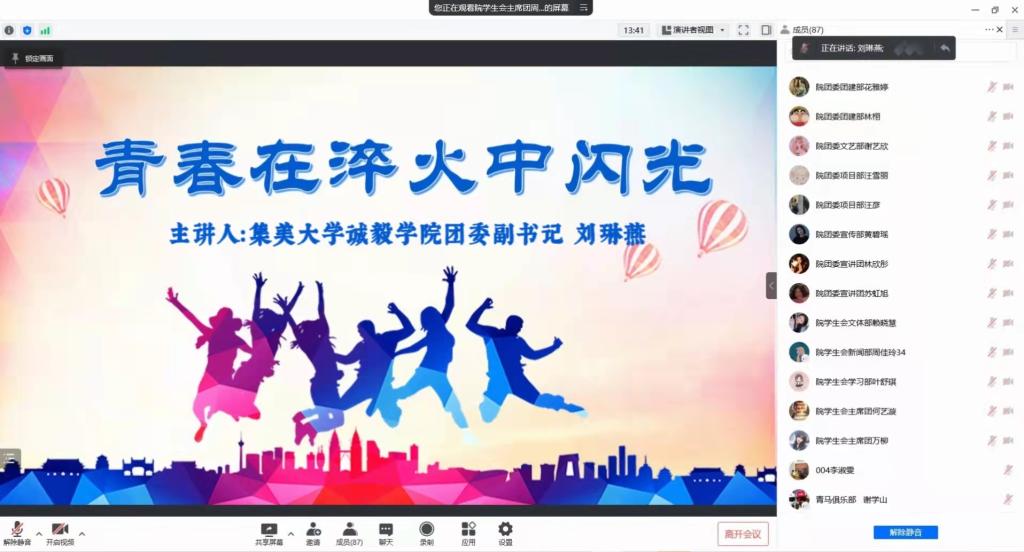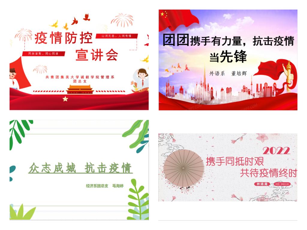我院各基层团支部书记、学生组织负责人迅速集结,以“云课堂”模式组织团支部、学生组织、团小组(宿舍)等群体开展疫情防控主题团日活动,通过形式多样的系列主题教育坚定团员青年抗疫信心,切实发挥带头模范作用、扛起校园疫情防控政治责任,带领基层团支部发挥战斗堡垒作用,严格落实学校各项防疫举措,响应学院号召参与疫情防控志愿服务活动,夯实校园疫情防线。