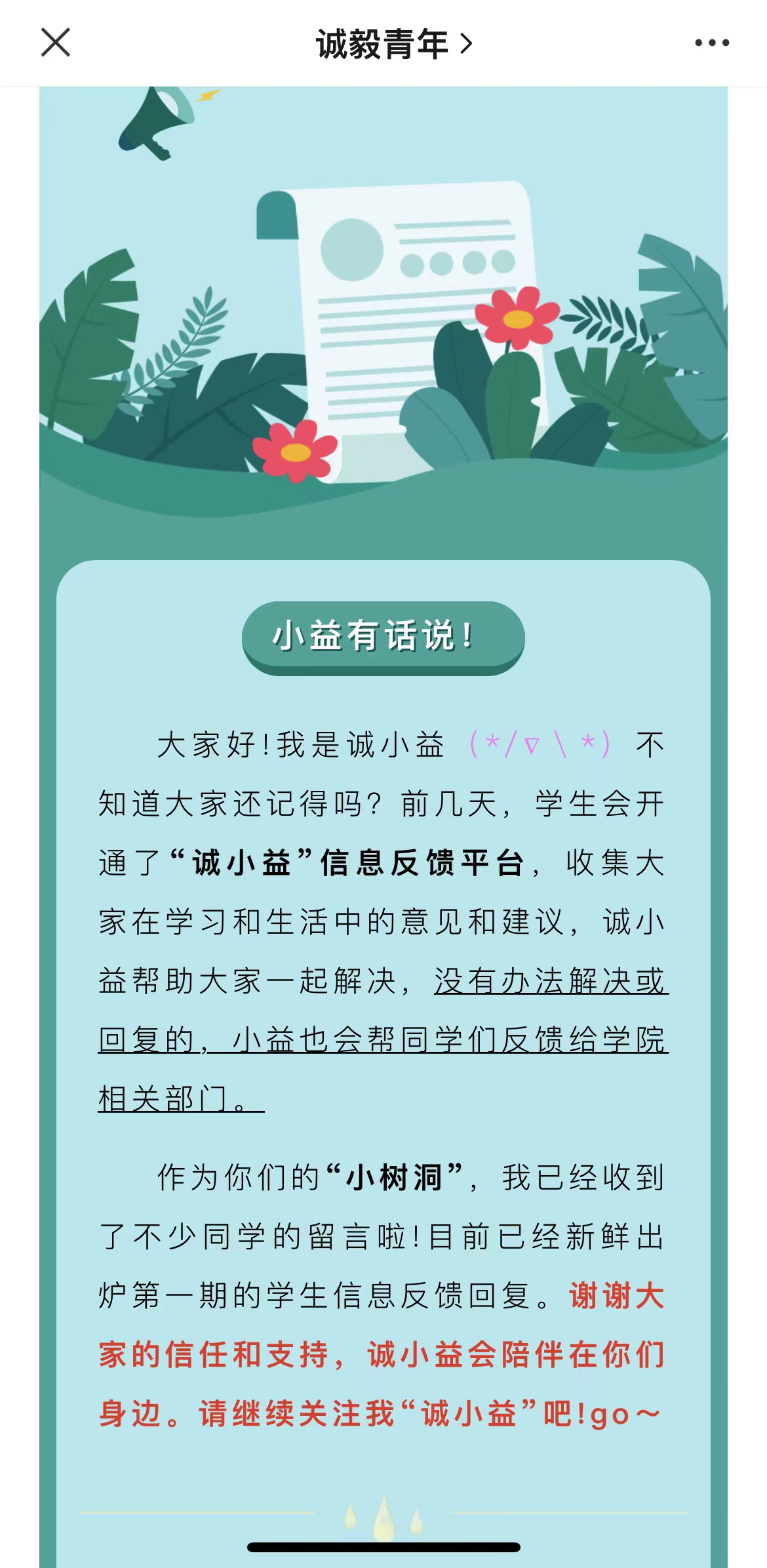 拓展信息反馈渠道,“诚小益”学生信息反馈平台上线
