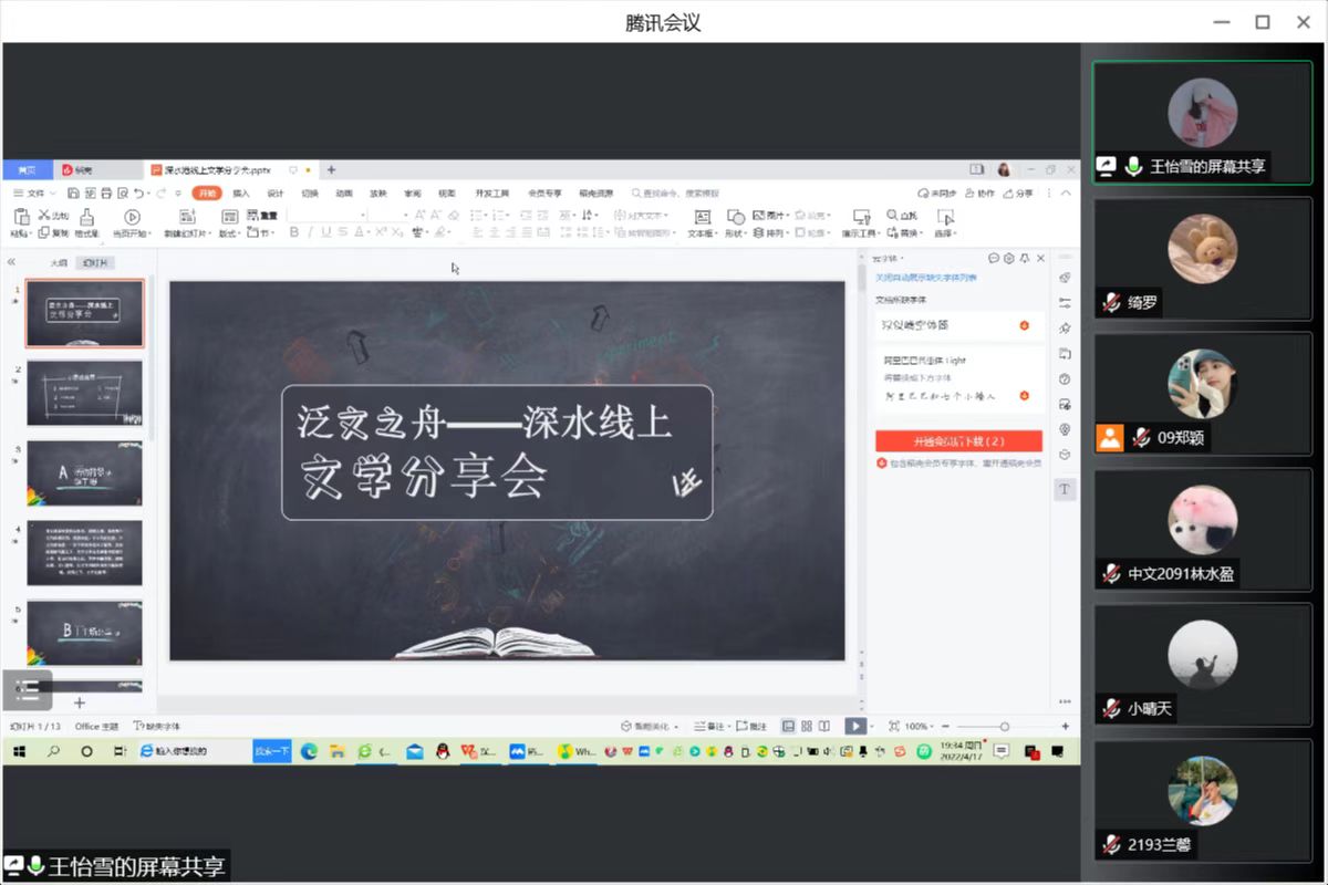 为迎接4月23日的世界读书日,给诚毅学子搭建展示读书成果的舞台,让每一位同学学会读书,爱上读书,与大师对话,与经典为友,养成博览群书的好习惯。4月17日,院团委举办“泛文之舟”线上文学读书分享会活动,同学参与热情高,精心挑选、分享优秀读物,如《黄金时代》《简·爱》《西海固笔记》等中外文学作品,详细介绍了书中内容并阐述了心得体会。