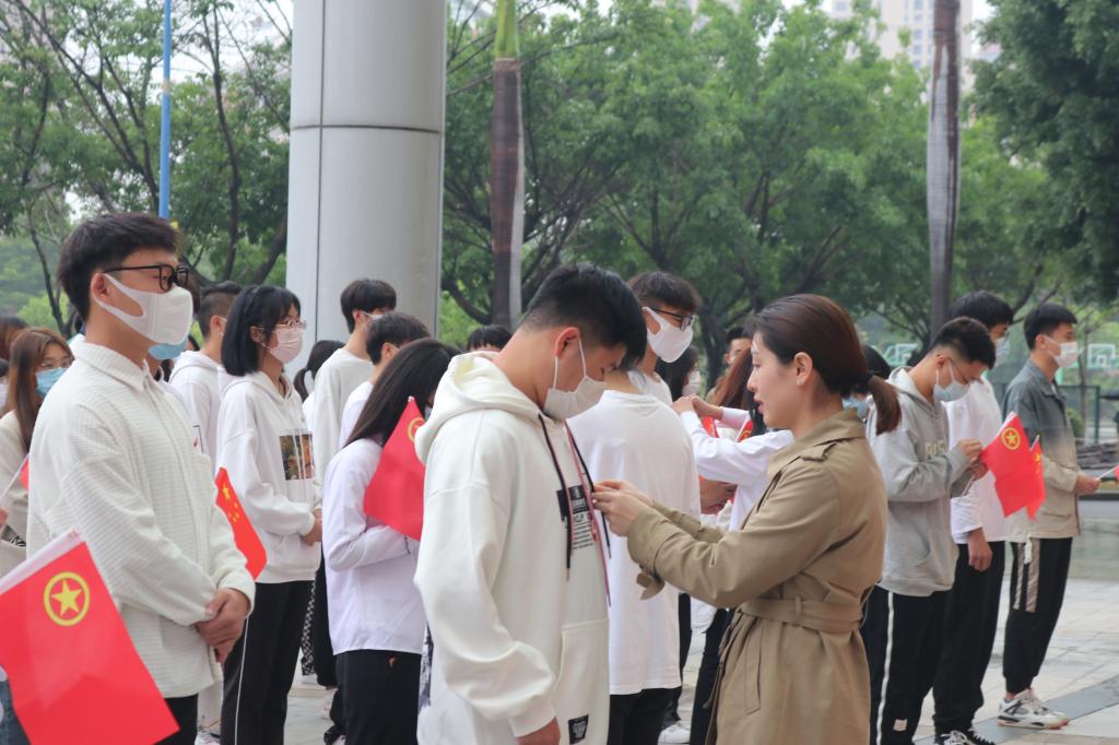 仪式在嘹亮的国歌声中拉开帷幕,主持人宣读新发展团员名单,并由师生团干代表为新团员佩戴团徽。随后,全体师生面向团旗,右手成拳,庄严宣誓。宣誓完毕,英语2192陈鑫和数科1991林涵分别作为新、老团员代表发言。院团委副书记刘琳燕对新加入的青年团员表示祝贺,并希望新、老团员要树立远大理想,做理想信念坚定的爱国者;锤炼品德修为,做社会主义核心价值观的践行者;练就过硬本领,做堪当民族复兴重任的奋斗者,以新时代奋斗者的姿态,为中华民族伟大复兴的中国梦奋勇拼搏。