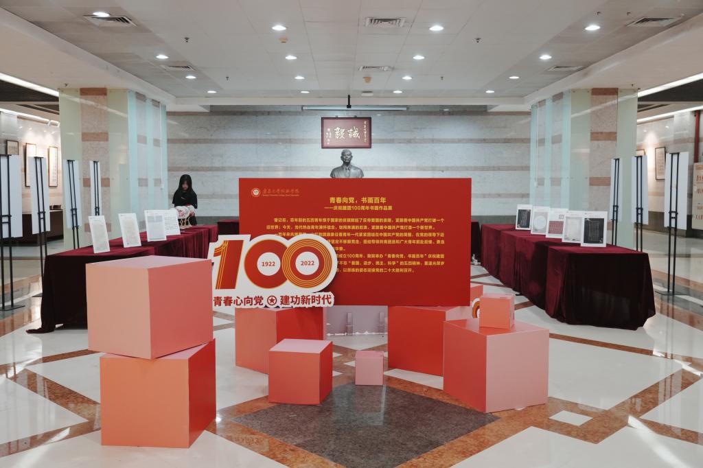 5月4日至5月21日,为喜迎党的二十大,庆祝中国共青团成立100周年,引导广大诚毅青年不忘“爱国、进步、民主、科学”的五四精神,重温光荣岁月,颂扬民族精神,激发爱党爱国的热情,我院在景祺楼一楼大厅举办“青春向党,书画百年”庆祝建团100周年书画作品展。