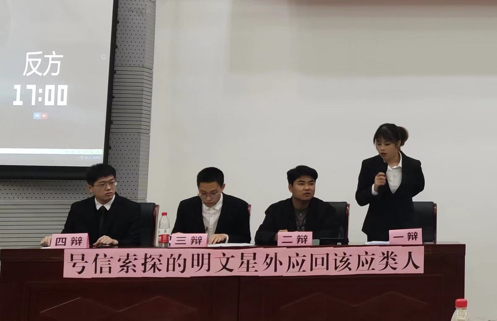 在决赛现场中,信息工程系和管理系两支队伍展开了季殿的争夺,他们围绕“对于青年来说,‘我想/不想做怎样的人’更重要”这个辩题你攻我守,激烈交锋。冠亚之战在经济系和中软国际互联网学院之间展开,双方唇枪舌战,引经据典,围绕“新闻自由是/不是社会改革的最大动力”进行辩论,刀光剑影之间尽显辩手风采,本次辩论赛的热烈气氛被推向高潮。赛后,评委老师分别对本次比赛进行了点评,指出了辩手们的优点和不足,给予在场观众和辩手们极大启发,得到了热烈响应。比赛最后,我院演讲与辩论协会和院辩论队以“人类应不应该回应外星文明的信号”为题带来了一场生动的表演赛,在经久不息的掌声中本届辩论赛圆满落幕。
