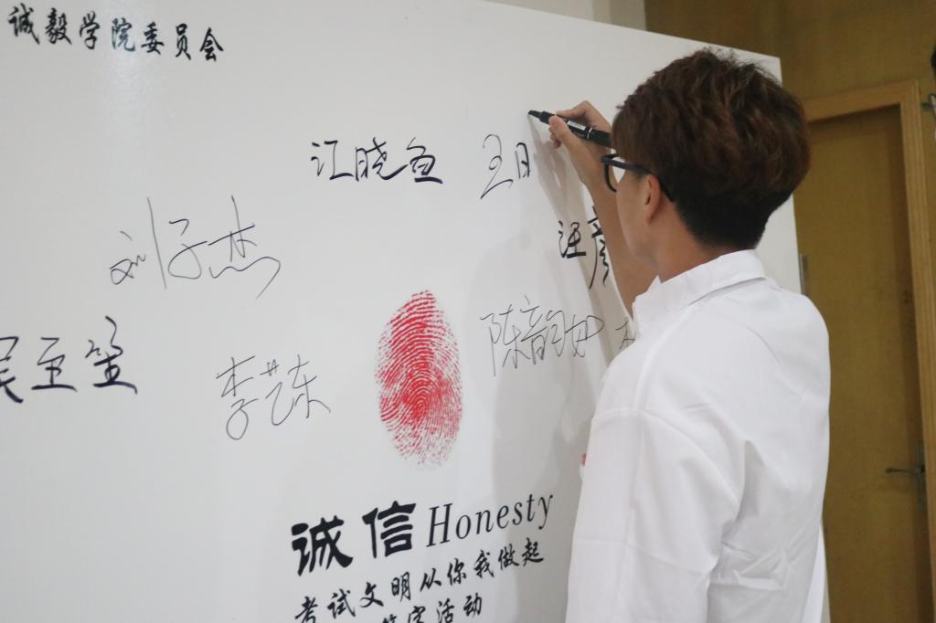 院团委各工作部门负责人根据本学期的工作进行了简要总结,指出了一学期以来开展工作所取得的成绩与不足,并提出了未来的工作规划。院团委主要学生干部宣读了诚信应考倡议书和诚毅学院考试规章制度,呼吁大家共同秉持“诚以待人,毅以处事”的优良作风,诚信应考,各部门工作人员代表纷纷在诚信应考承诺板上签名。团委指导老师分别为“星级部门”及“星级部长”进行了颁奖。