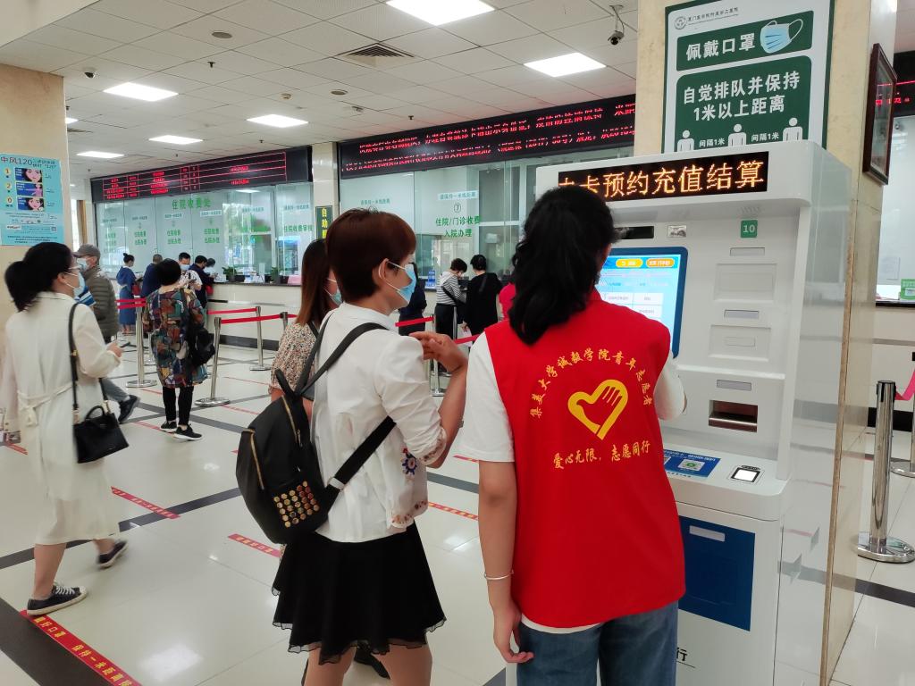 为进一步推进我院与厦门医学院附属第二医院战略合作,我院组织青年志愿者到厦门医学院附属第二医院开展志愿服务活动。本学期志愿服务内容主要为门诊导诊、楼层引导、咨询服务、自助服务机使用指导、维护医院就诊秩序、协助医务工作者开展相关工作等服务,并根据我院专业特点设置英语特长志愿者岗位,服务相应人群。本学期我院青年志愿者累计参与二院志愿服务活动163人次,时长达571小时。此外,院团委还与二院达成医务人员子女义务家教志愿服务活动意向,切实为抗疫一线医务工作人员解决难题,营造“为奉献者奉献”的浓厚氛围。