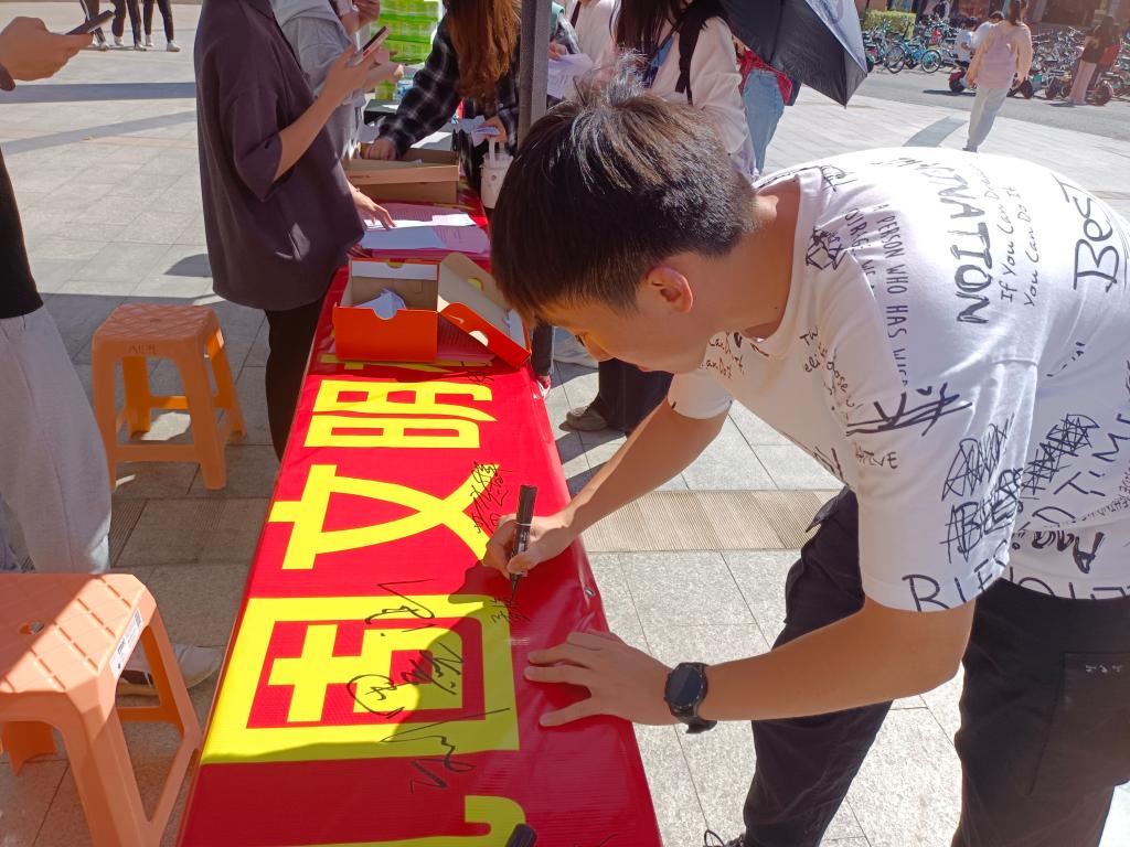 自今年10月起,院团委组建两支专项志愿服务队,“文明骑行”专项志愿服务队在校园行车高峰期协助保安一同保障交通安全,倡导文明骑行,针对校园内电动自行车、摩托车不按指定道路行驶、乱停放,骑乘人员不佩戴安全头盔等不文明交通行为进行引导。11月2日至今,志愿服务人次达476人次,累计服务时长达695.4小时。“洁净校园”专项志愿服务队每天上午8点到下午18点分批次开展志愿服务,认真维护好我院北大门门口两侧路段的卫生环境,并组织多次校园清扫活动,10月20日至今,志愿服务人次达339人次,累计服务时长达563.4小时。11月9日至11月12日,我院在诚毅食堂门口开展“巩固文明校园成果,携手共建美丽鹭岛”倡议活动,志愿者们分发宣传倡议书,并引导同学们一同参与到创建活动中来。院青年志愿者协会以文明骑行、厉行节约、文明城市创建、垃圾分类等与校园文明、城市文明息息相关的难点堵点为主题,开展有奖问答、动手分类等小游戏与同学们进行互动,在校园内营造出浓厚氛围。