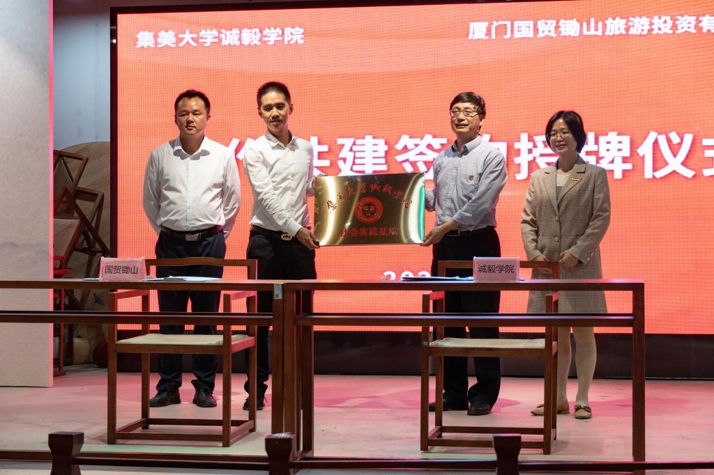 5月10日,为学习贯彻习近平新时代中国特色社会主义思想主题教育,落实“学思想、强党性、重实践、建新功”主题教育总要求,积极拓展我院学子思想政治教育、社会实践的平台,我院与厦门国贸锄山旅游投资有限公司共建社会实践基地正式签约并开展“学思想、强党性、重实践、建新功”主题团日活动。厦门国贸锄山旅游投资有限公司项目负责人吴文玮、锄山村党校馆长陈妙川,我院党委副书记连志崧、相关部门负责人出席仪式。