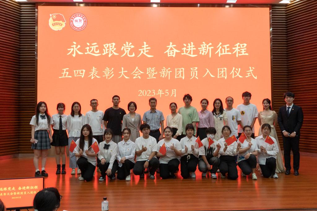 会上,我院对院级优秀团员、团干、五四红旗团支部以及志愿者等个人、集体进行了表彰,通报表扬了受到校级表彰的优秀团员、团干、五四红旗团支部、志愿者以及过去一年在团中央、省市级团组织的比赛和评选中获奖的个人和项目团队。受表彰的团支部代表分享团学工作经验,受表彰的团员代表通过《青春报告》和在场同学分享青春青春感言,许下青春誓言。入团仪式上,各系(院)团总支书记为新团员佩戴团徽,团组织代表陈丽菊带领新老团员面向团旗,庄严宣誓。
