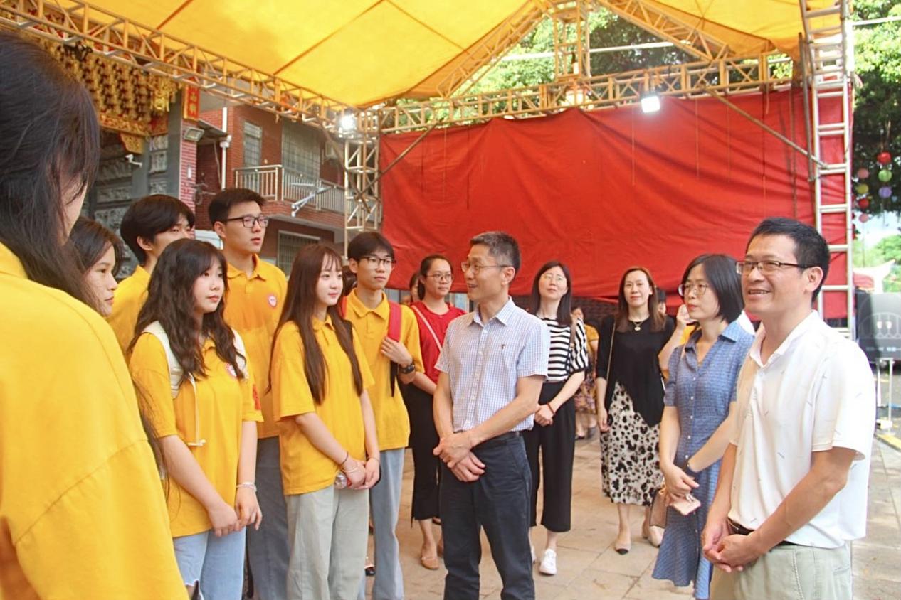 6月23日,党委副书记颜承志,体育与艺术系、团委负责人一行前往后溪村看望在此开展社会实践活动的“古瓷新韵”实践队以及“艺传星火”实践队。颜承志鼓励实践队师生要珍惜机会、勤思多问,利用社会实践的机会多调研、多思考、多探索,掌握技能、锤炼品格,并观看现场彩排,为实践活动的开展提出了宝贵的建议。当晚,体育与艺术系联合后溪村党委、村委会在后溪村城内社文化广场组织开展了一场以“清风徐徐过万家 端午品粽‘清廉香’”为主题的文艺汇演,实践队队员们参与演出及幕后工作并展览了精心制作的廉洁主题精品海报。集美文教区管委会主任鄢荣钗、我院副院长陈光田、后溪镇党委副书记吕玉惠,体育与艺术系、后溪村等领导出席观看汇演。本次实践活动展现了我院音乐、舞蹈教学的高质量成果和思政育人水平,丰富当地群众的文化生活,助力乡村文化振兴。