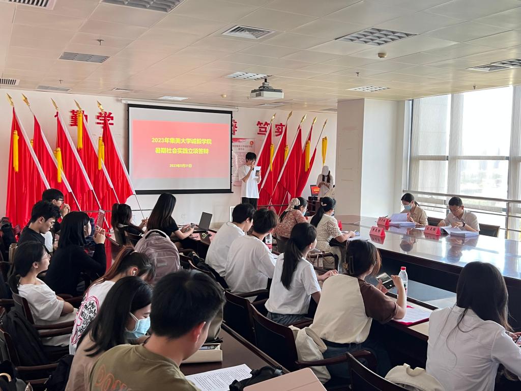 5月31日下午,我院在景祺楼十楼会议室举行2023年暑期社会实践立项答辩会。经过各教学系(院)和相关部门组建和推荐,共有18支集中实践团队参加现场答辩,另有5支自主实践队提交立项申报书,实践队伍数量创近年来新高。实践队代表通过PPT展示、现场答辩的形式从实践意义、预期效果、实践安排等方面向在场师生进行阐述。