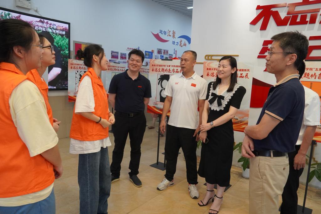 7月12日,院党委副书记颜承志、纪委书记徐镇峰,体育与艺术系党政负责人,赴集美区后溪龙山社区看望体育与艺术系“与你童行,快乐出发——幼儿素质提升”实践队。颜承志现场与社会实践师生进行心得交流,鼓励师生们积极参加大思政课社会实践活动,发挥专业所长服务群众;徐镇峰与龙山社区党总支负责人现场交流了党纪学习教育廉洁主题作品展览共建经验,达成廉洁文化建设长期合作的意向。