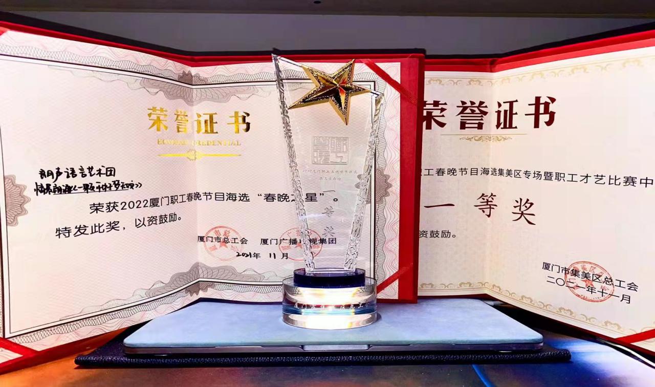此外,2021年11月25日,《一颗种子梦无双》在由厦门市总工会、厦门广播电视集团联合主办的“2022厦门职工春晚”海选活动拔得集美区头筹,并获得“春晚之星”的称号。